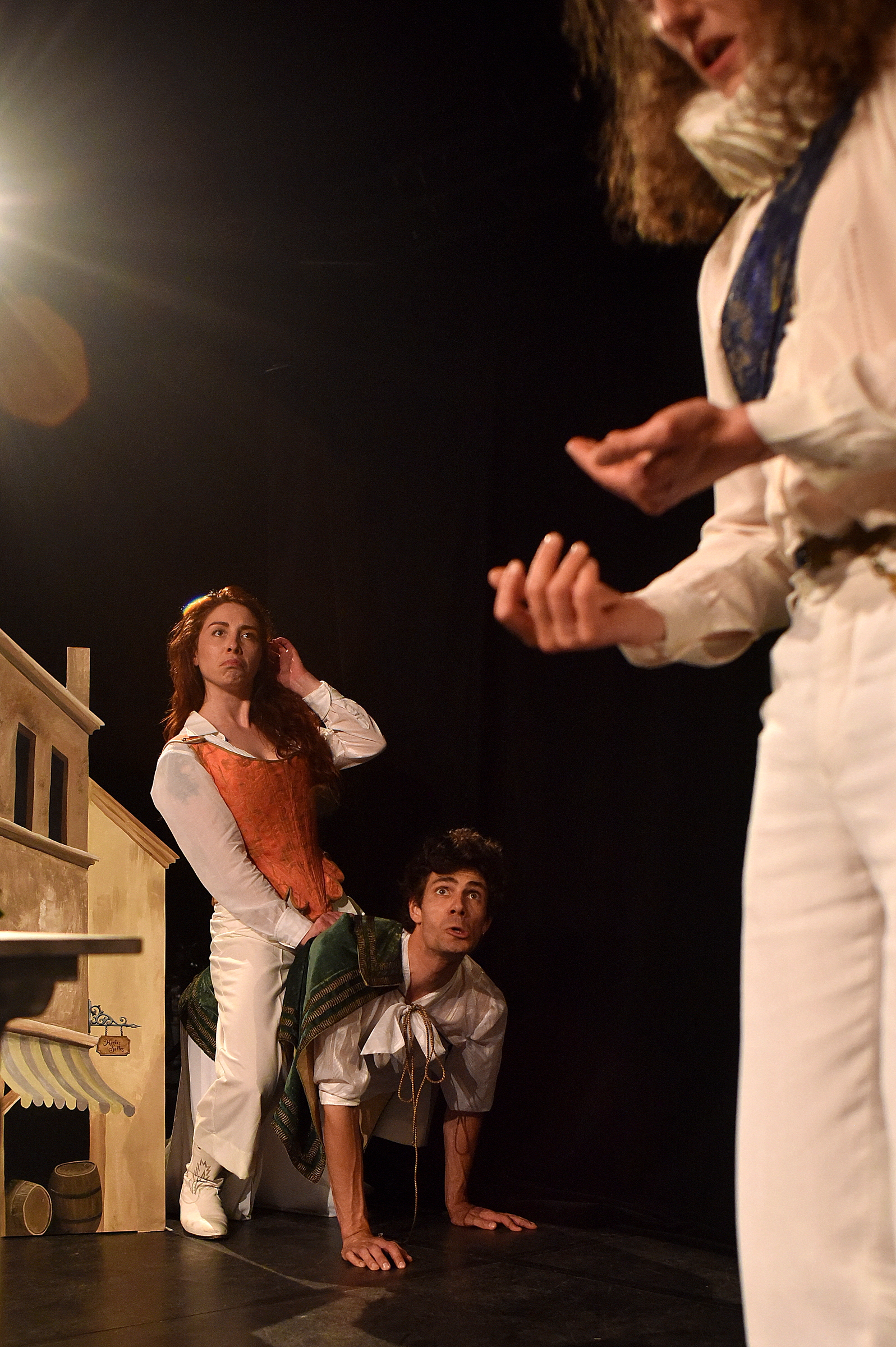 Nos créations portent cette ambition : La Supercherie réciproque, comédie du XVIIIe siècle jouée par trois interprètes qui incarnent tous les personnages à tour de rôle et proposent deux fins possibles, l’une dictée par l’Histoire, l’autre imaginée comme une échappée à la censure. L’Amoureux extravagant et Le Vieillard amoureux, ou l’heureuse feinte, deux comédies du XVIIe siècle rassemblées parfois dans un diptyque intitulé Les Heureuses Feintes, jouent des travestissements, des quiproquos inspirés de la commedia dell’arte pour révéler l’absurdité des normes sociales de leur temps. Enfin, Les Éclipsées propose une forme plus intime : un seul-en-scène qui commence comme une conférence ludique avant de plonger dans le théâtre, redonnant vie à l’œuvre d’une autrice et à ses personnages dans toute leur vitalité.